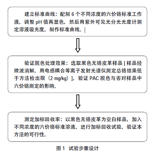 本方法采用聚合氯化鋁作為脫色劑,有效將深色皮革樣品的六價鉻提取液轉變為澄清溶液,加標回收試驗結果表明脫色劑未對六價鉻測定產生影響,解決了深色皮革樣品中六價鉻比色法測試的技術難題;本方法操作簡便快捷,無需填裝脫色柱,所需測試成本較低、效率高,利于推廣應用。